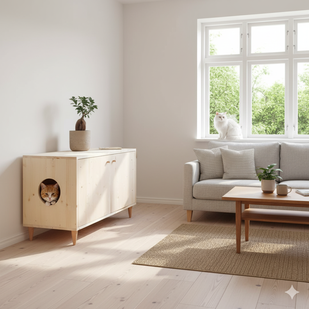 Los areneros para gatos ocultos en madera permiten ocultar el arenero de tu michi en un mueble que se ajusta al diseño y la decoración de tu hogar, dándole privacidad y atrapando olores indeseables.