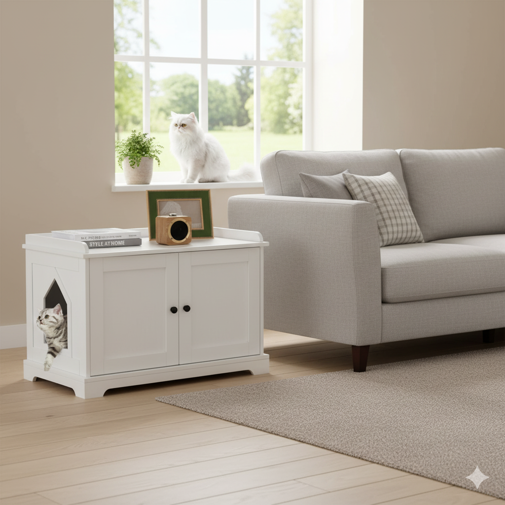 Los areneros para gatos ocultos en madera permiten ocultar el arenero de tu michi en un mueble que se ajusta al diseño y la decoración de tu hogar, dándole privacidad y atrapando olores indeseables.