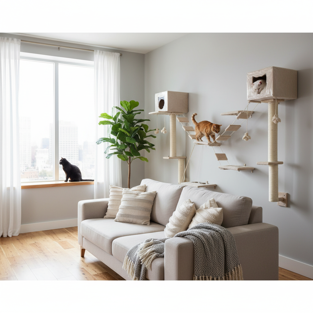 Permite que tus michis se diviertan con este gimnasio de pared para gatos.