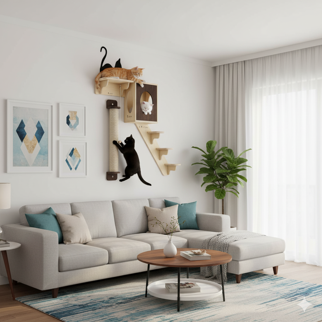Este gimnasio para gatos le permite a tus michis explorar y ejercitarse.