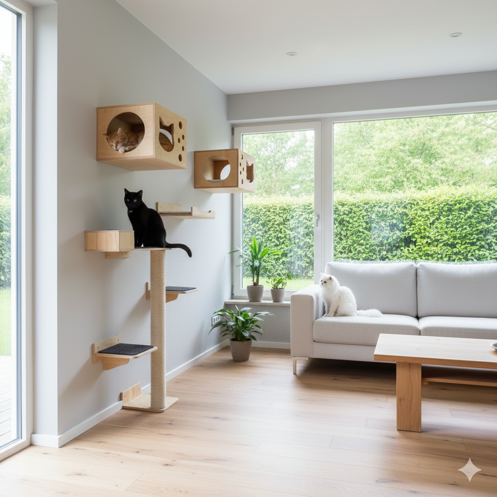 Un gimnasio de pared para gatos impulsa al máximo la destreza de tus michis