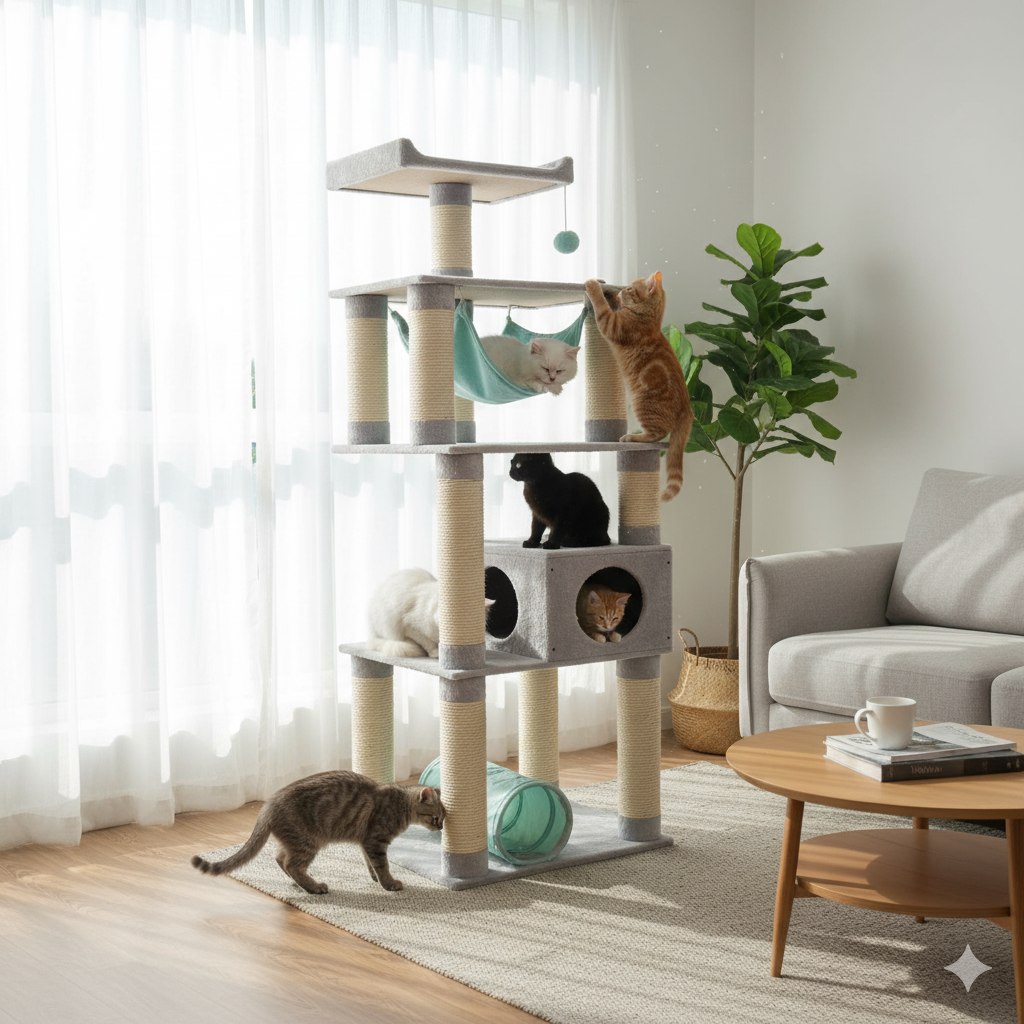 Este gimnasio para gatos le permite a tus michis explorar y ejercitarse.
