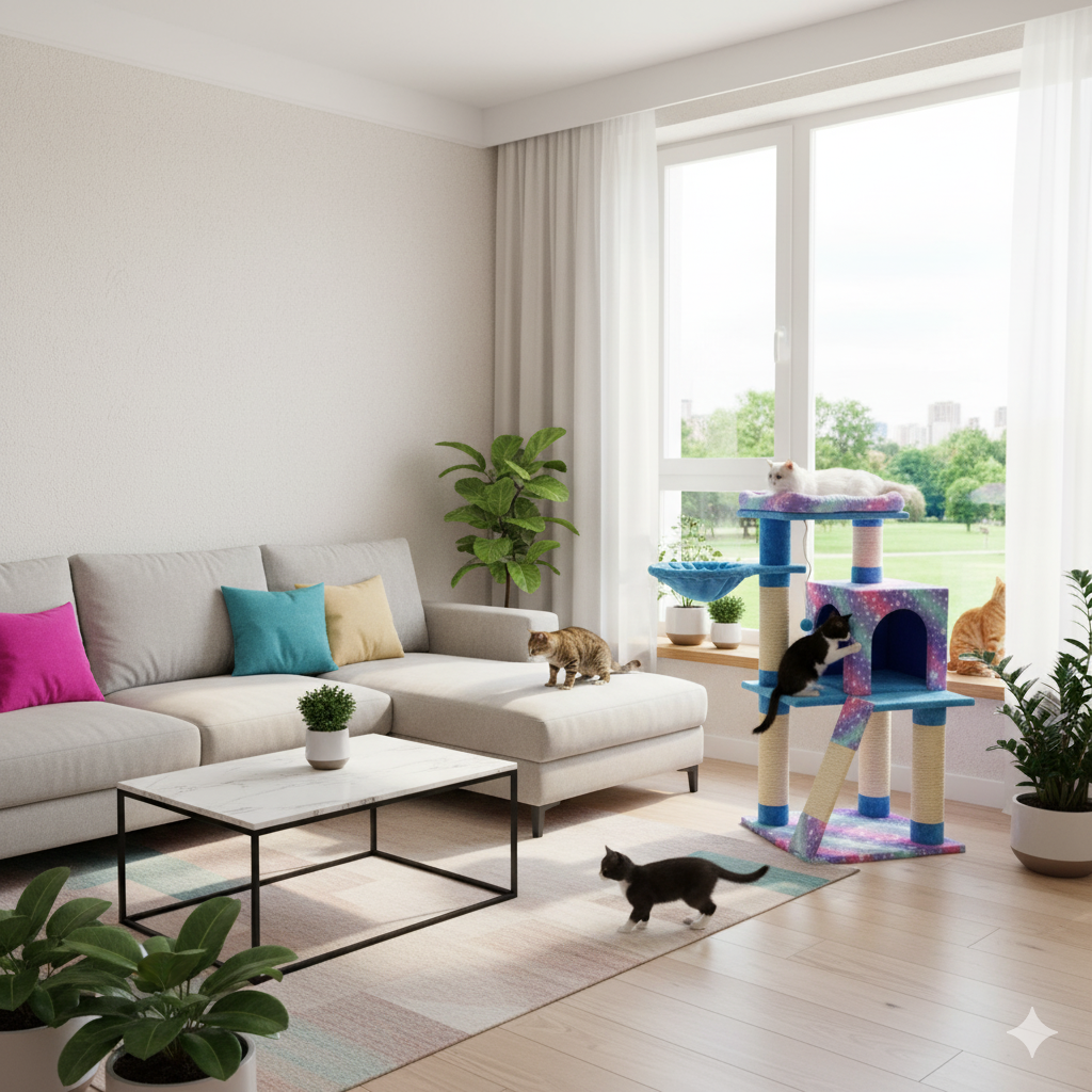 Este gimnasio para gatos le permite a tus michis explorar y ejercitarse.
