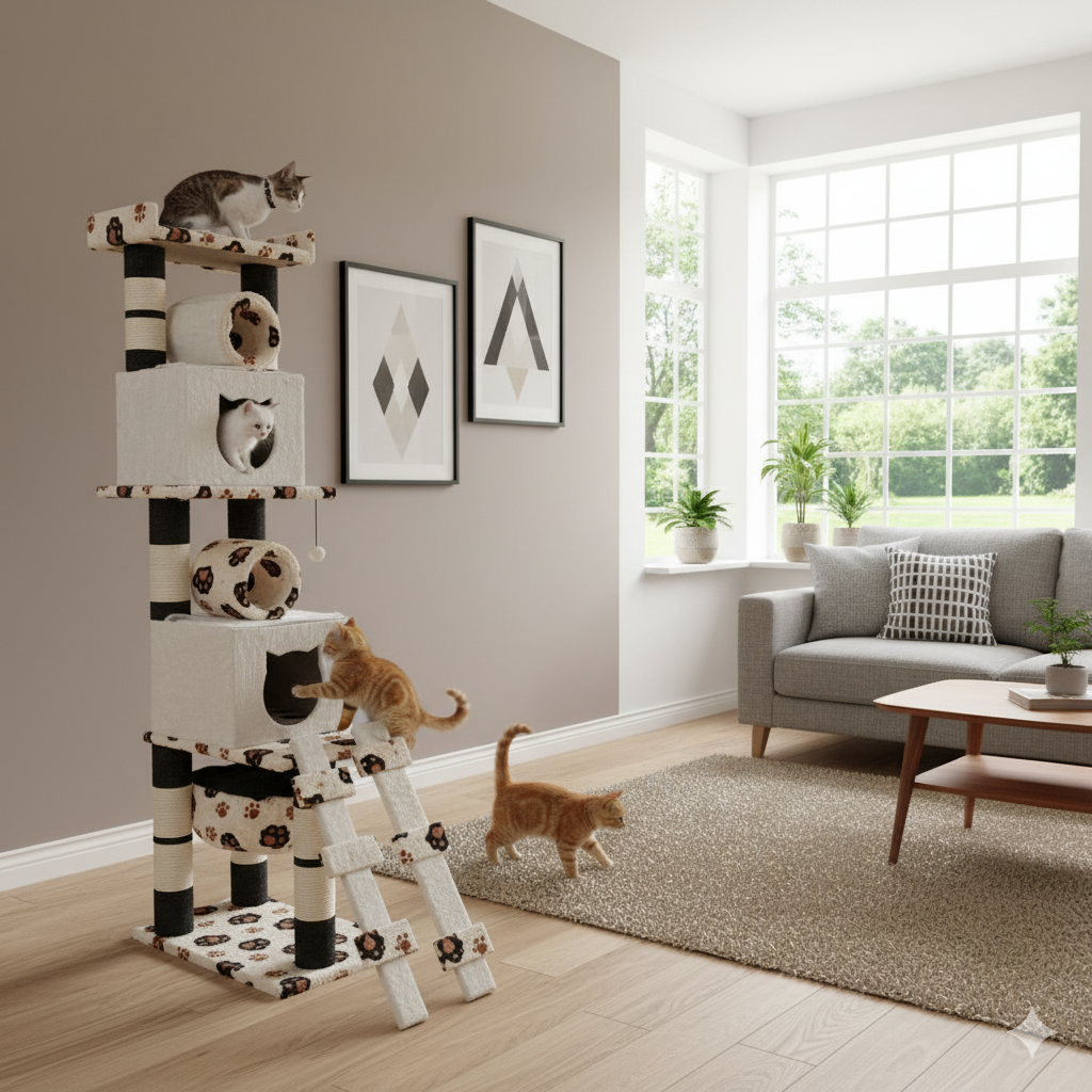Este gimnasio para gatos le permite a tus michis explorar y ejercitarse.