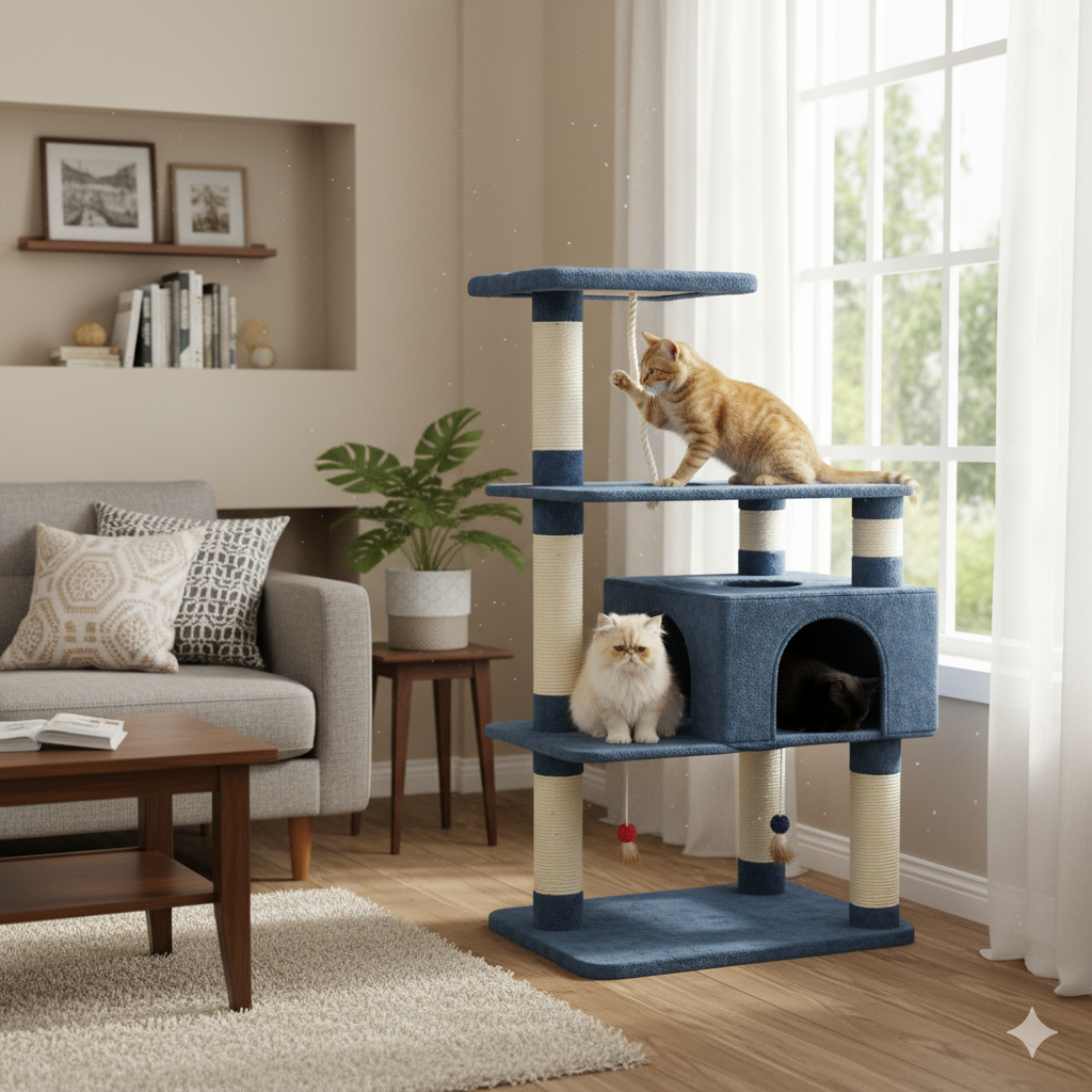 Este gimnasio para gatos le permite a tus michis explorar y ejercitarse.
