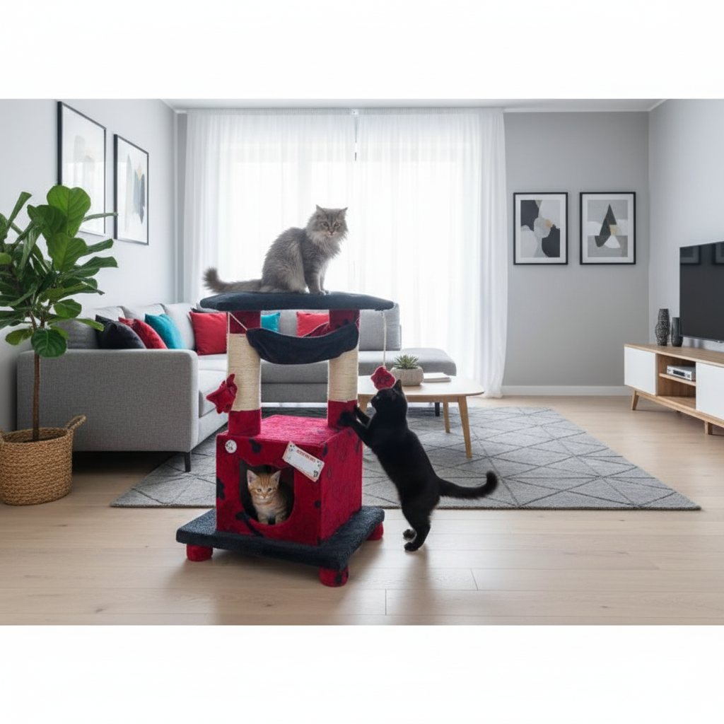 Este gimnasio para gatos le permite a tus michis explorar y ejercitarse.