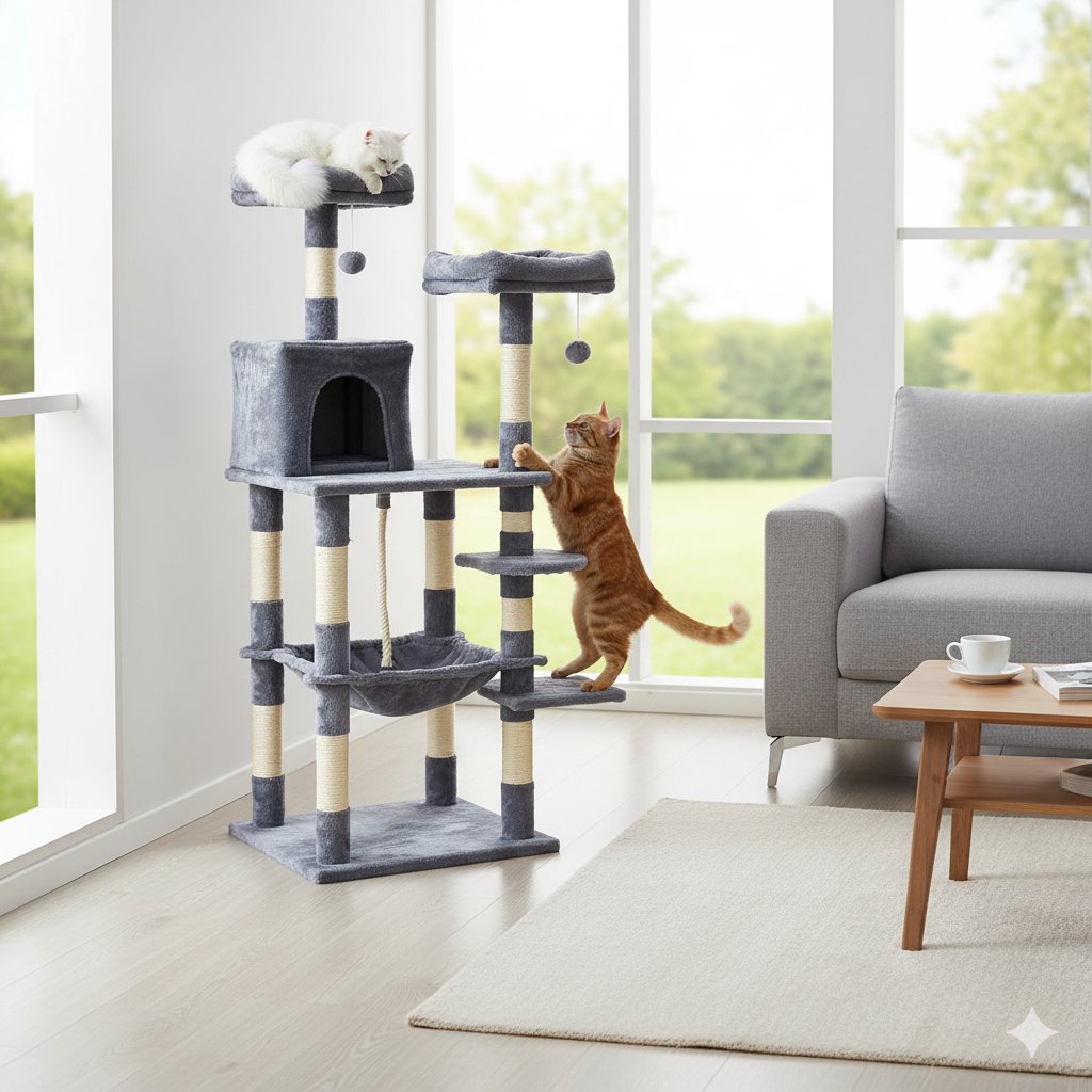 Este gimnasio para gatos le permite a tus michis explorar y ejercitarse.