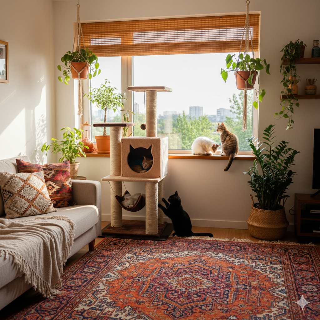 Este gimnasio para gatos le permite a tus michis explorar y ejercitarse.