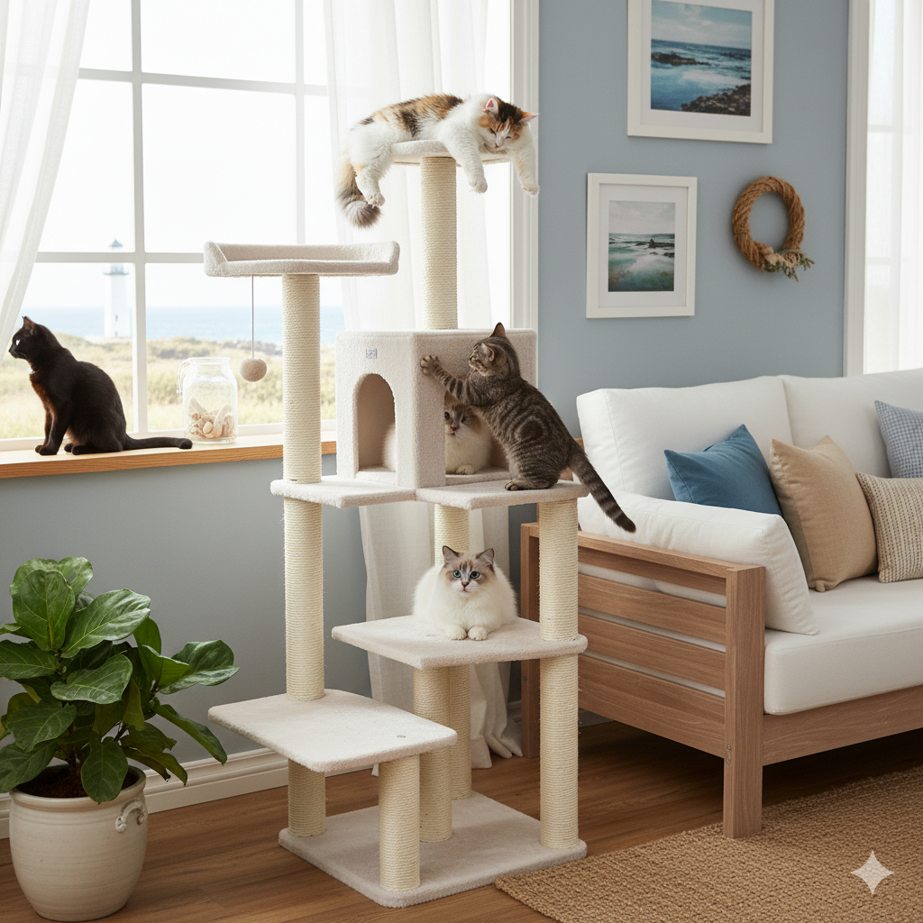 Este gimnasio para gatos le permite a tus michis explorar y ejercitarse.