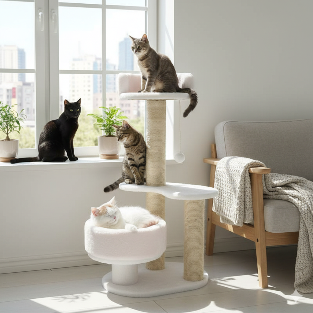 Este gimnasio para gatos le permite a tus michis explorar y ejercitarse.