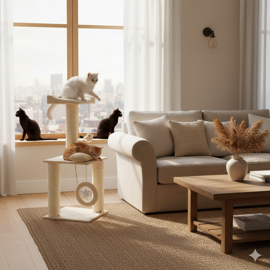 Este gimnasio para gatos es ideal para espacios pequeños.