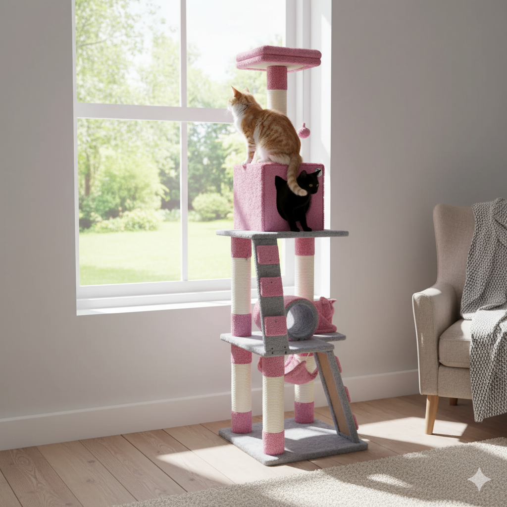 Este gimnasio para gatos le permite a tus michis explorar y ejercitarse.