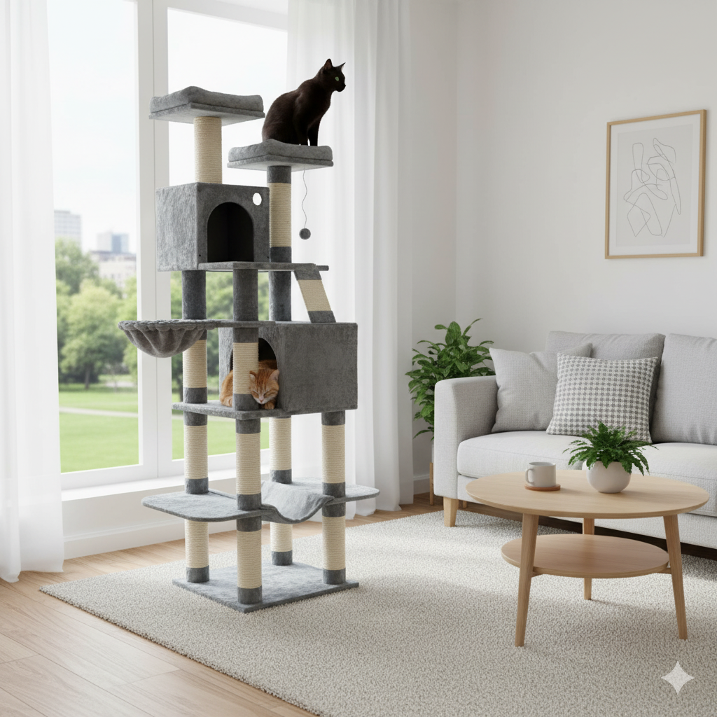 Este gimnasio para gatos le permite a tus michis explorar y ejercitarse.