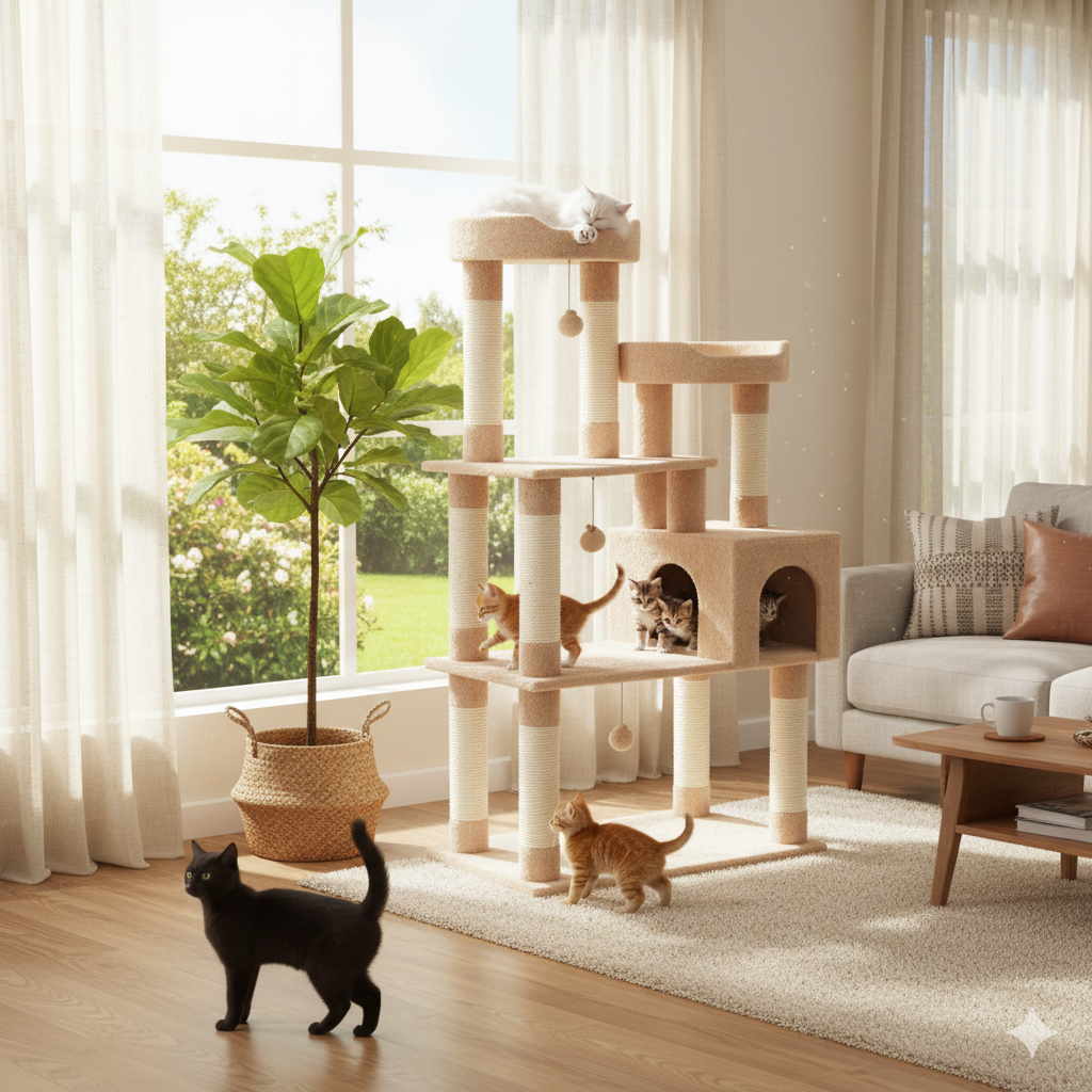 Este gimnasio para gatos le permite a tus michis explorar y ejercitarse.