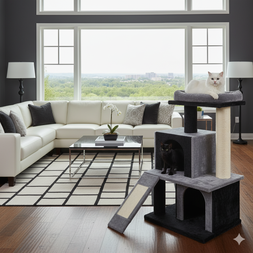 Este gimnasio para gatos le permite a tus michis explorar y ejercitarse.
