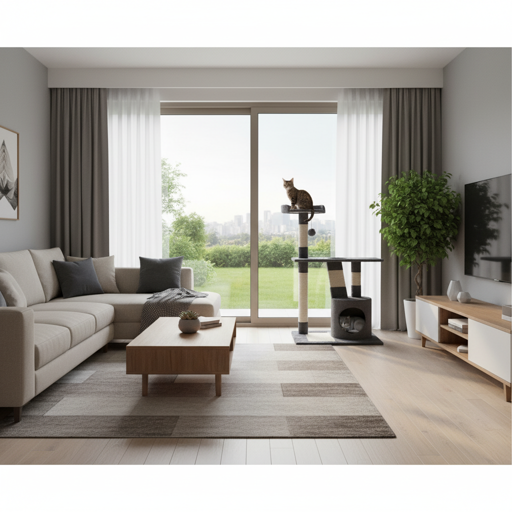 Este gimnasio para gatos le permite a tus michis explorar y ejercitarse.
