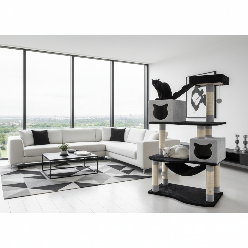 Este gimnasio para gatos le permite a tus michis explorar y ejercitarse.