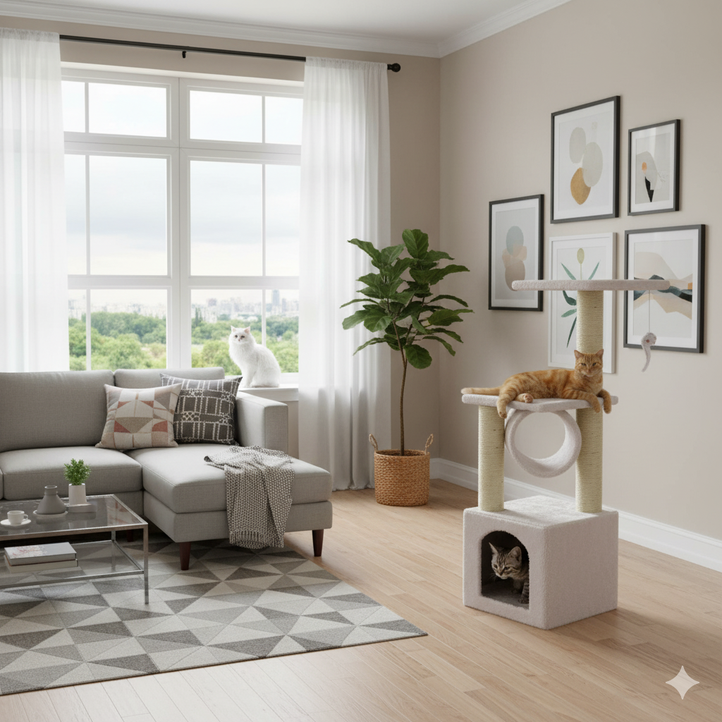 Este gimnasio para gatos le permite a tus michis explorar y ejercitarse.