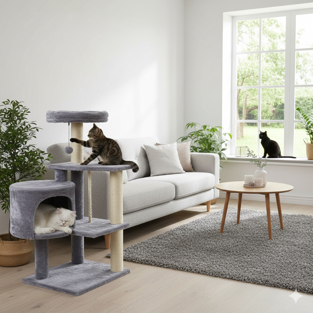 Este gimnasio para gatos le permite a tus michis explorar y ejercitarse.