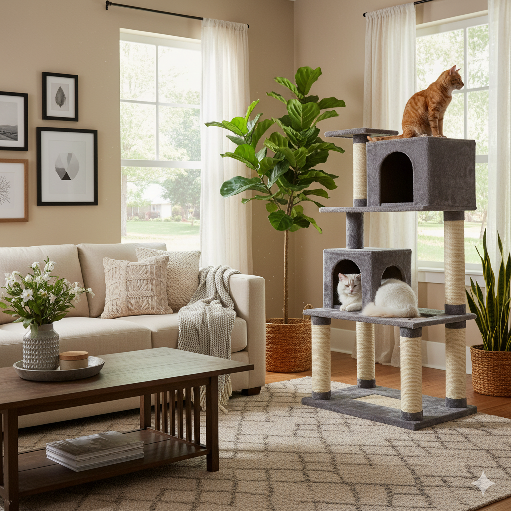 Este gimnasio para gatos le permite a tus michis explorar y ejercitarse.