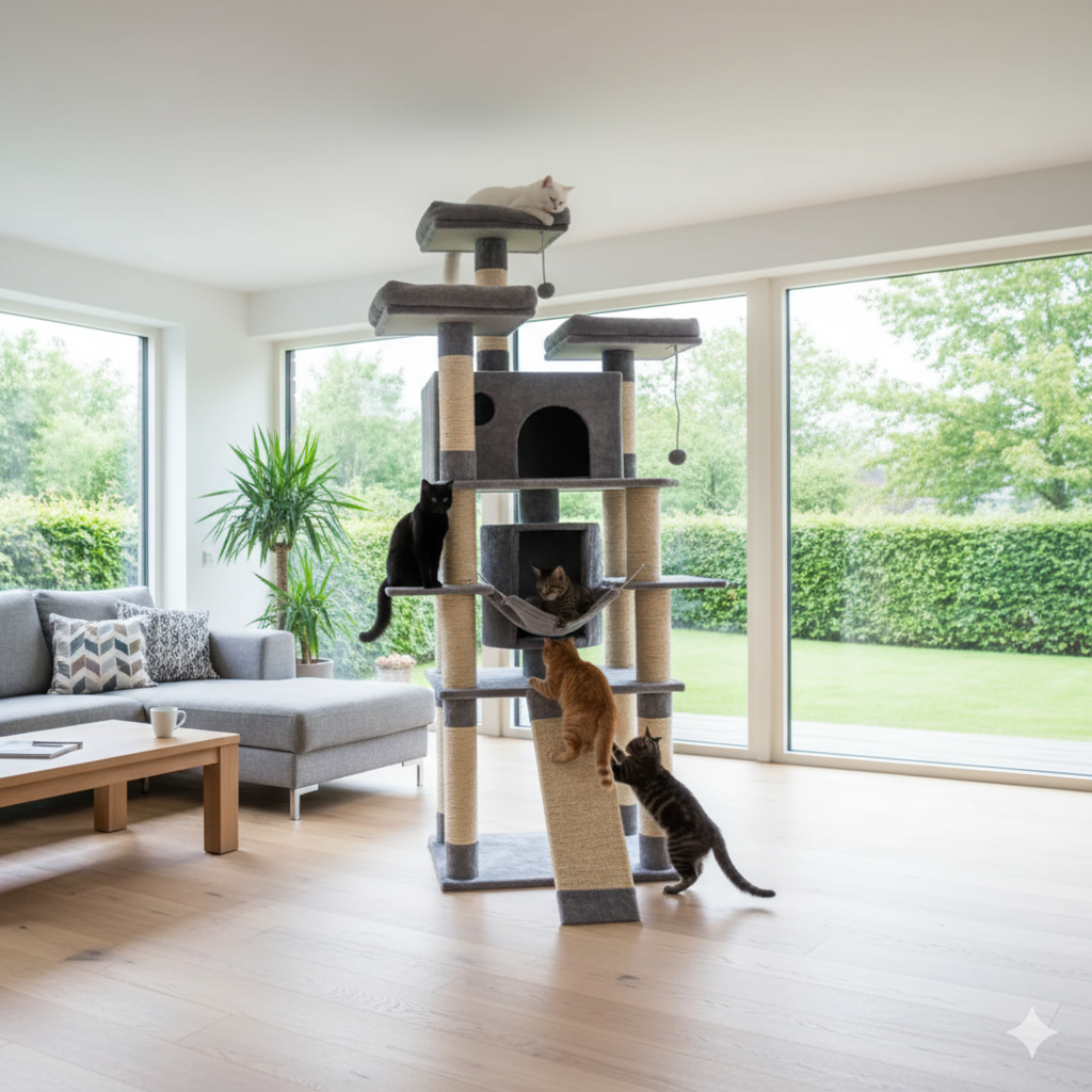 Este gimnasio para gatos le permite a tus michis explorar y ejercitarse.