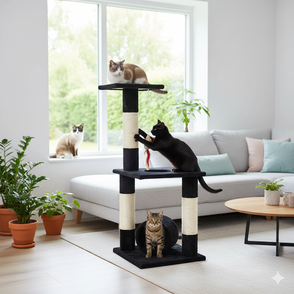 Este rascador para gatos le permite a tus michis explorar y ejercitarse.